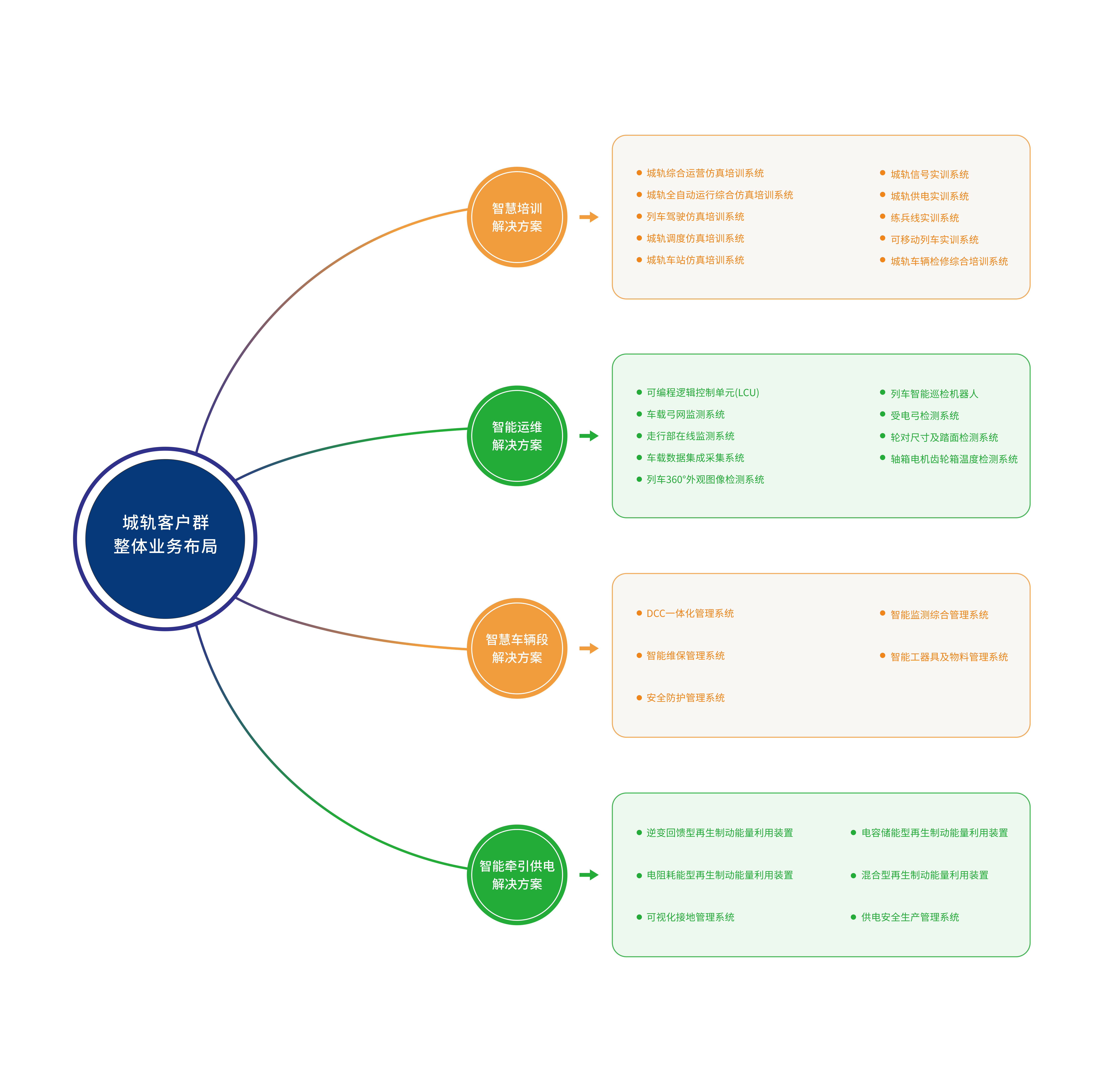 在城市軌道交通領域,針對培訓、車輛、車輛段、牽引供電業(yè)務場景,運達可提供智慧培訓、智能運維、智慧車輛段、智能牽引供電4大解決方案。四大解決方案分別包括N個核心子產(chǎn)品及相關服務。