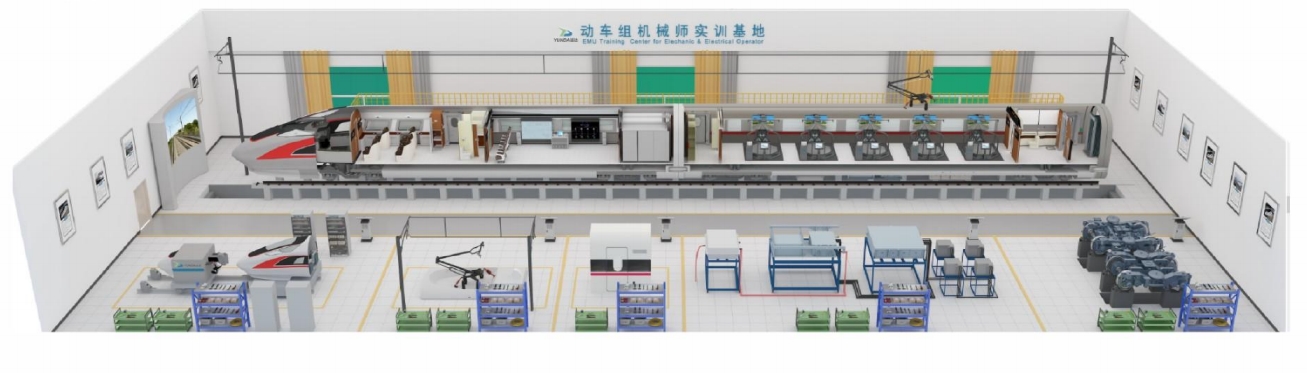動車組車輛檢修實訓系統(tǒng)的實訓方式分為整車實訓與單系統(tǒng)實訓,整車實訓方式將動車組Tc車與Mp車結合,模擬動車組整車環(huán)境,進行整車檢修實訓;單系統(tǒng)實訓方式將動車組各個關鍵系統(tǒng)分別獨立為單個培訓產品,進行專項實訓,包含車頂高壓實訓系統(tǒng)、轉向架實訓系統(tǒng)、制動實訓系統(tǒng)、車門實訓系統(tǒng)、車鉤聯掛實訓系統(tǒng)、司機室實訓系統(tǒng),滿足動車組機械師對車輛設備認知、動車組一二級檢修、應急故障處置等作業(yè)內容的培訓需求。
